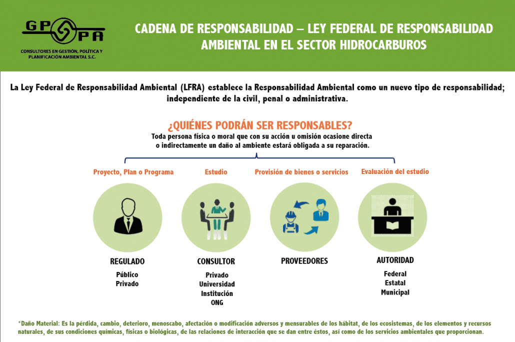 La “Ley Federal de Responsabilidad Ambiental” (LFRA) regula, como su nombre lo indica, la responsabilidad ambiental que se constituye de los daños ocasionados al ambiente, así como la reparación y compensación de los mismos cuando sea exigible a través de los procedimientos pertinentes.